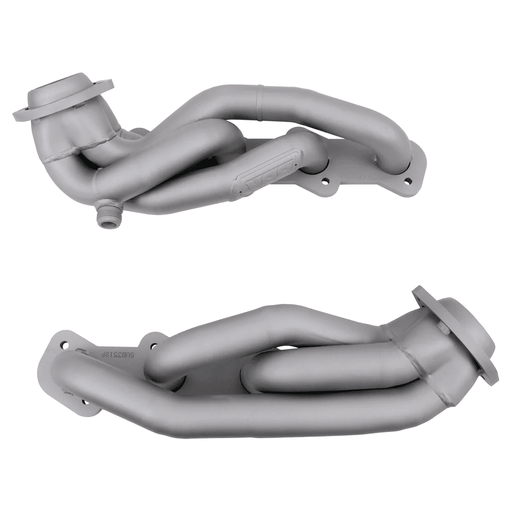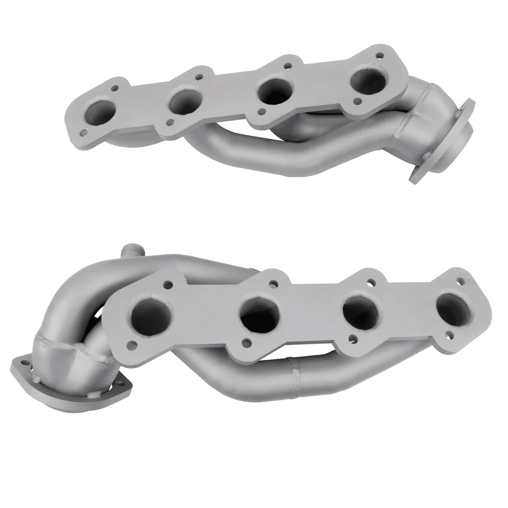 BBK F150 shorty headers are made from 1-5/8" CNC-machined mandrel bent tubing with 3/8" thick die-stamped flanges. The large diameter primary tube design creates unrestricted airflow for major horsepower gains. These headers are pressure tested to ensure leak free performance.