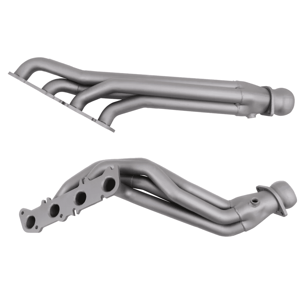 BBK Performance full length headers are made from 1-3/4" CNC mandrel bent 16 gauge tubing with 3/8" thick die-stamped exhaust flanges to prevent heat distortion. The full length primary tube design creates unrestricted exhaust flow for ultimate horsepower gains. These headers are pressure tested to ensure leak free performance. Our high heat ceramic finish will withstand high exhaust temperatures and unlike header wraps and traditional heat paint does not hold damaging heat and moisture around the part. Rather, the surface temperatures are reduced extending the life of the part. This BBK ceramic finish will keep its good looks and last a lot longer than traditional cheaper nickel finishes.