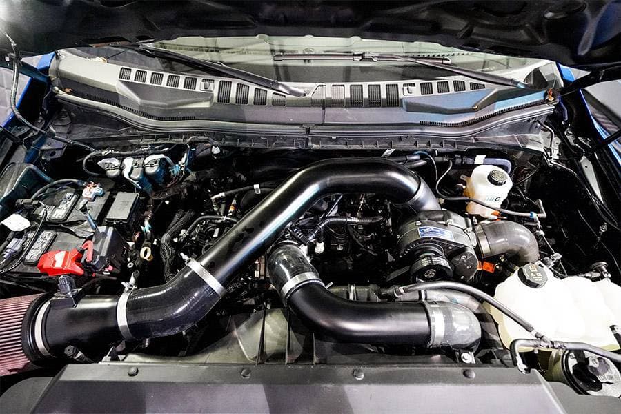 Procharger has the complete High Output systems as well as Tuner Kits with highly effective air-to-air intercooling that are very easy to install (less than 8 hours, with simple hand tools), retains the factory air box and offers the highest power gains in the industry. Their system uses a proven P-1SC-1 supercharger head unit (others are available as options in the Tuner Kit) with bulletproof air-to-air intercooling making 7-8 psi of boost and generating 45+% more power than stock. This supercharger system also works perfectly with the truck’s 10-speed automatic transmission, keeping the boost level consistent and highly efficient. That is power you can FEEL both on the street and while pulling a heavy load. Power you NEED from your new Super Duty Ford.