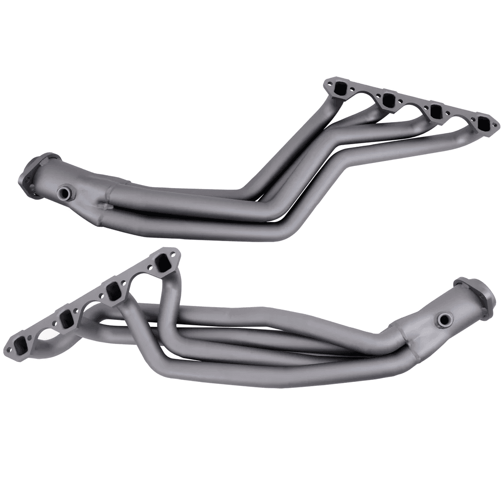 Extract maximum performance from your 1979-1993 Mustang 5.0 with these ceramic coated BBK Performance full length headers. BBK full length headers will increase your exhaust flow giving you additional horsepower and torque. These full length headers will help give your Mustang a throaty exhaust note. The titanium ceramic coated finish improves durability and holds in heat to reduce underhood temperatures and improve power.