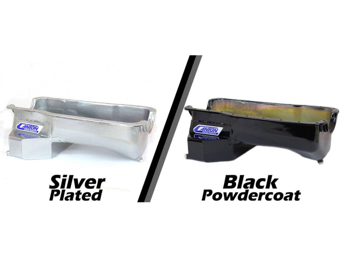 FEATURES: This pan has a stock depth, with a T style rear sump and the Canton track proven diamond shape road race baffle assembly with four trap doors and runners to direct oil to the pickup under all conditions, bolt in windage tray, temperature fitting, magnetic drain plug, crank scraper, and a provision for pan mounted dipstick along with increased oil capacity.