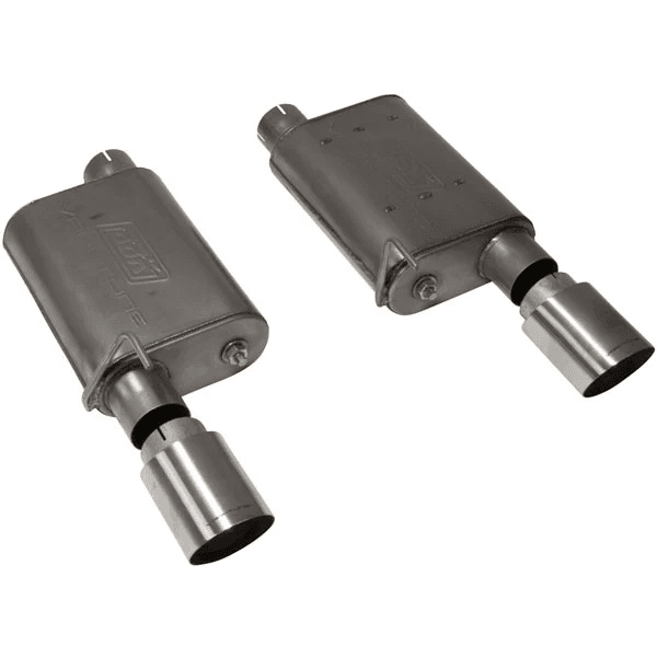 The BBK Varitune Axle Back Exhaust Kit for 2005-2010 Ford Mustang GT 4.6L offers full tuning ability with BBK's patented adjustable power valve. That's right, these unique systems come complete with two patented tunable Varitune performance mufflers engineered with high-flow, direct fit stainless steel 2-3/4" tubing and hardware for an easy bolt on installation. Each system also includes a pair of stylish 4" stainless tips to deliver good looks in addition to maximum performance.