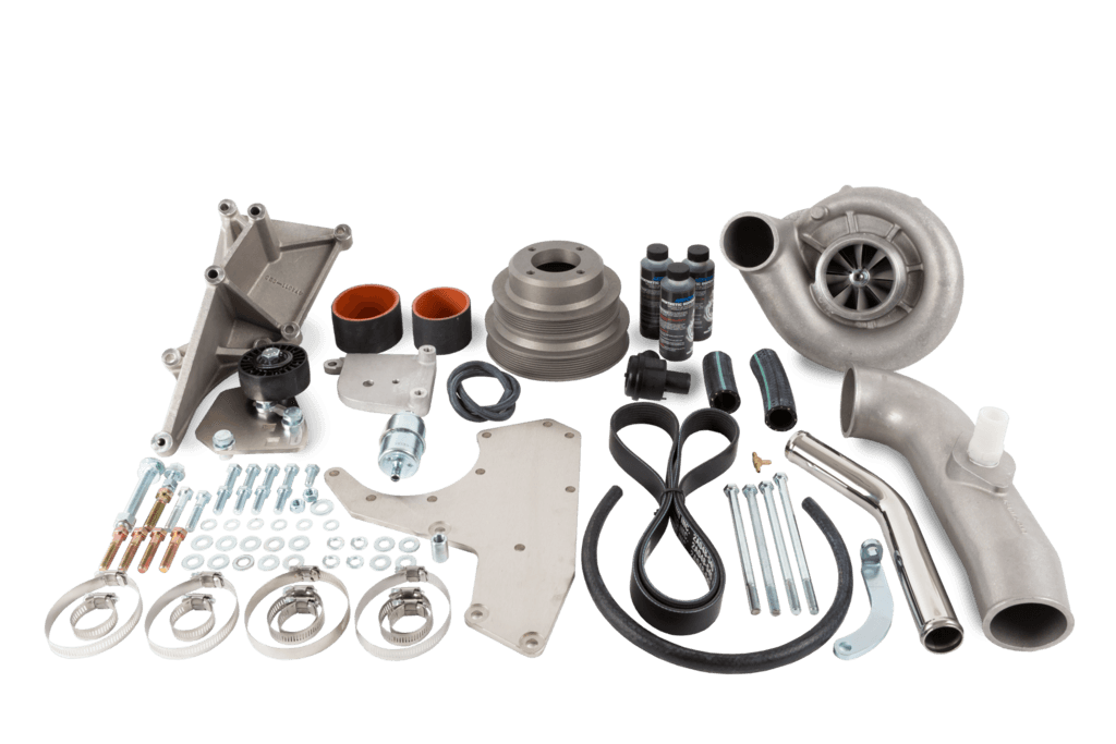 - Complete bolt-on system including all necessary belts, pulleys and reusable high-flow air filter.