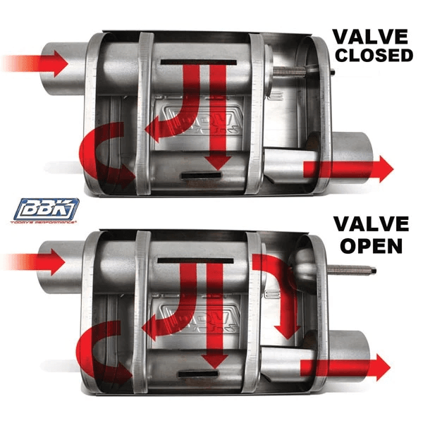 Kit Includes BBK Varitune Mufflers With An Internal Power Valve That Allows Fine Tuning of Sound and Power Levels