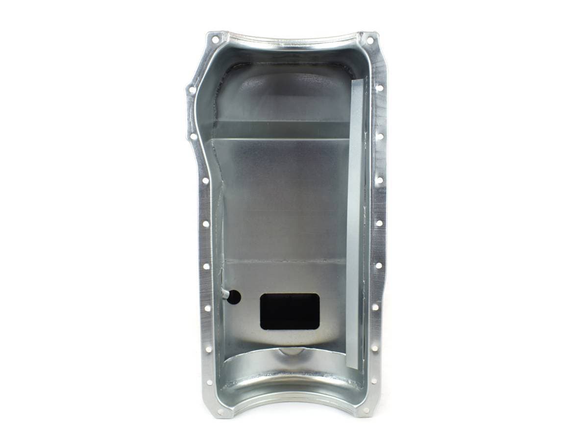 FEATURES: This oil pan has a Extra Deep Sump For Increased Oil Capacity, Crank Scraper, Slosh Baffle, Provision For Our Pan Mounted Dipstick, Magnetic Drain Plug