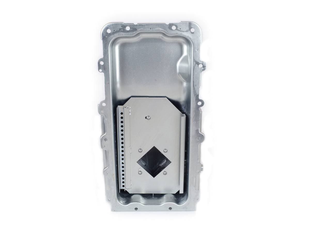 FEATURES: Track proven road race baffle assembly with four trap doors and runners to direct oil to the pickup under all conditions, bolt in slosh baffle, temp. fitting and magnetic drain plug.