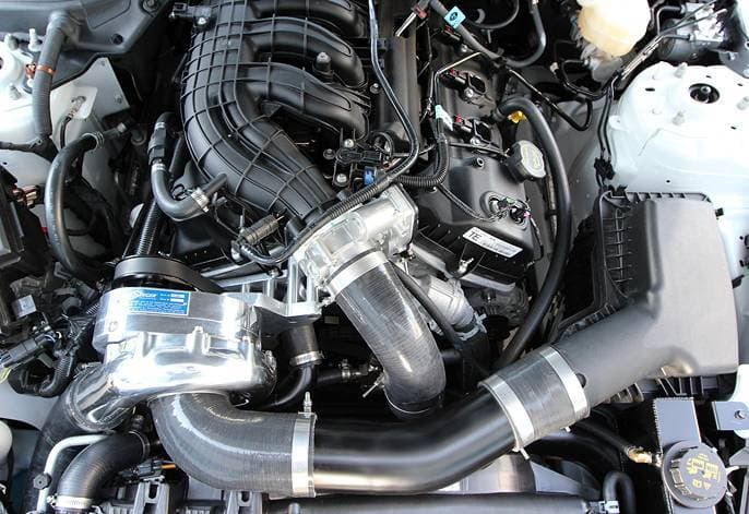 Utilizing the patented and proven, self-contained ProCharger P-1SC-1 supercharger making 8 psi of boost, a highly effective air-to-air intercooler and dedicated 6-rib drive, a ProCharger system or tuner kit can add 170 or more HP to an otherwise stock 2015/16 3.7L Mustang running high quality pump gas. Given Ford's 305 hp rating for the new 3.7L engine, ProCharger-equipped 2015 V6 Mustangs make 475+ flywheel horsepower. ProCharger systems for 3.7 V6 Mustangs feature an awesome “from the factory” look and come with a standard 3-year warranty on the intercooler and 1-year warranty on the supercharger (Optional 3-year supercharger warranty is available).