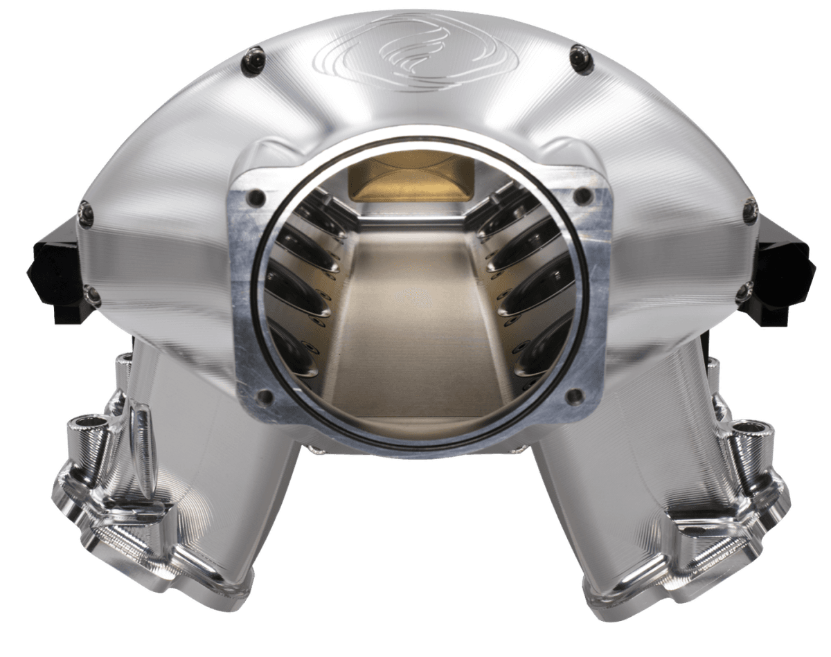 Freakshow intake manifold is inspired by the hottest NHRA Pro Stock designs. FED engineers gave it a sick meticulous design and added a raging plenum volume capable of 2,000 HP. The 100% billet aluminum Freakshow is built with a lot of options and versatility to serve naturally aspirated, Nitrous or remote inter-cooled boost applications.