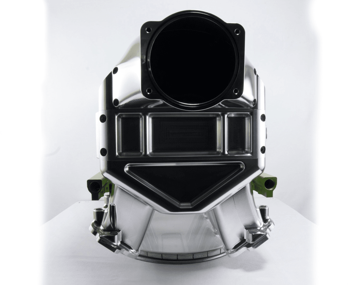 Go further with greater efficiency & lower intake temps with this modular air-water intercooled intake manifold. CNC machined entirely from billet aluminum. Single injector set-up to compliment the increase in airflow through a large 103mm throttle body opening. Capable of handling 2000 HP applications. The ICEMAN!