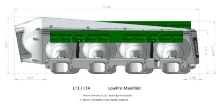 The LOWPRO created a new class of performance intake manifolds by cleanly fitting inside the stingy space under factory hoods like the C5, C6, C7 Corvette as well as 4th, 5th and 6th generation Camaros. Power adder and naturally aspirated applications alike thrive with LOWPRO’s added plenum volume and cylinder-to-cylinder flow from mid to high range RPM.