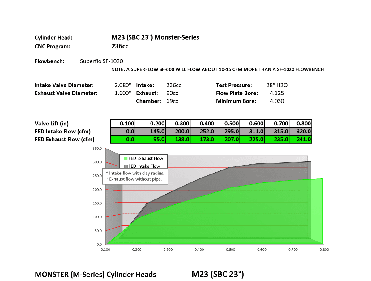 236cc SBC Monster-Series Cylinder Head Flow Chart | |||||||