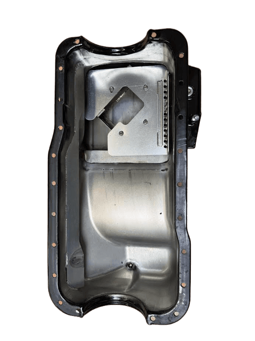 Note: oil pan has some scratches and scrapes from long tube headers hitting includes supercharger return-line bung welding in.