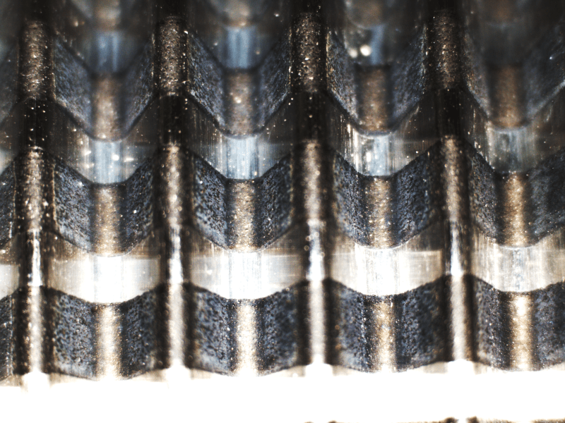 GripTec ZPE utilizes two patented technologies to enhance surface grip: GripTec Micro and GripTec Weld. GripTec Micro uses a CNC ablation process to remove material from the pulley surface. The multi-directional machined ridges and valleys not only provide maximum gripping force but also serve as escape channels for trapped air and debris, improving the connection between the belt and the pulley. GripTec Weld infuses a blend of metals and engineered aggregates to achieve an optimal friction coefficient on the pulley surface. These combined methods create unique contact points between the belt and pulley ribs, resulting in an unparalleled grip that prevents belt slippage. (See pictures for examples)