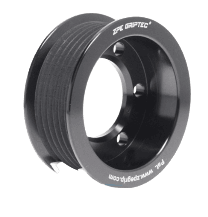 GripTec ZPE utilizes two patented technologies to enhance surface grip: GripTec Micro and GripTec Weld. GripTec Micro uses a CNC ablation process to remove material from the pulley surface. The multi-directional machined ridges and valleys not only provide maximum gripping force but also serve as escape channels for trapped air and debris, improving the connection between the belt and the pulley. GripTec Weld infuses a blend of metals and engineered aggregates to achieve an optimal friction coefficient on the pulley surface. These combined methods create unique contact points between the belt and pulley ribs, resulting in an unparalleled grip that prevents belt slippage. (See pictures for examples)