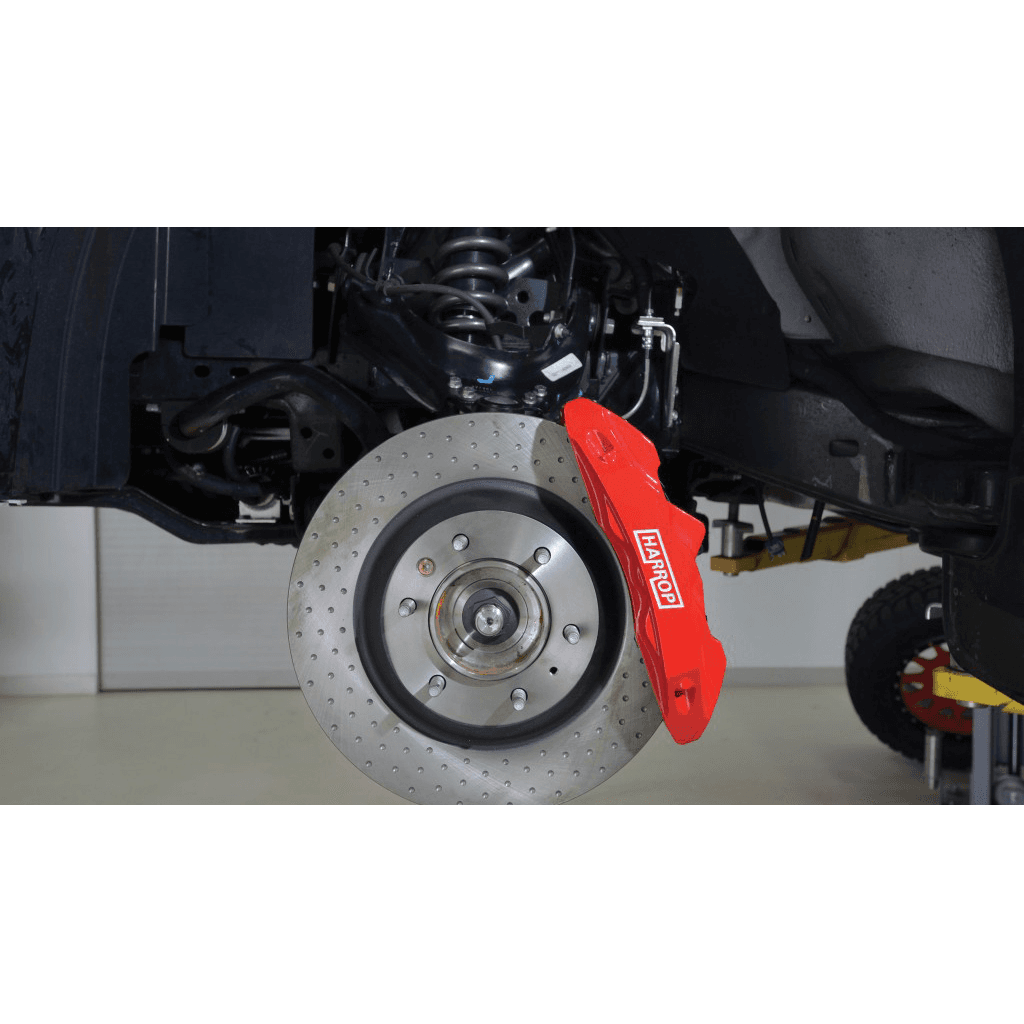 Designed and manufactured in Australia, our new Holden Colorado Front Brake Upgrade delivers substantial increases in braking performance. Consisting of one-piece 36mm non-directional rotors with drill point pattern and 6 Piston Ultimate Calipers, the Harrop Front Brake Upgrade offers superior heat dissipation and resistance to brake fade when compared to OE fitted brakes. Drawing on lessons learned over the years developing and manufacturing high-performance and racing components. the front rotors also feature a new multi-vane internal pattern, placing these new kits on the leading edge of braking technology.