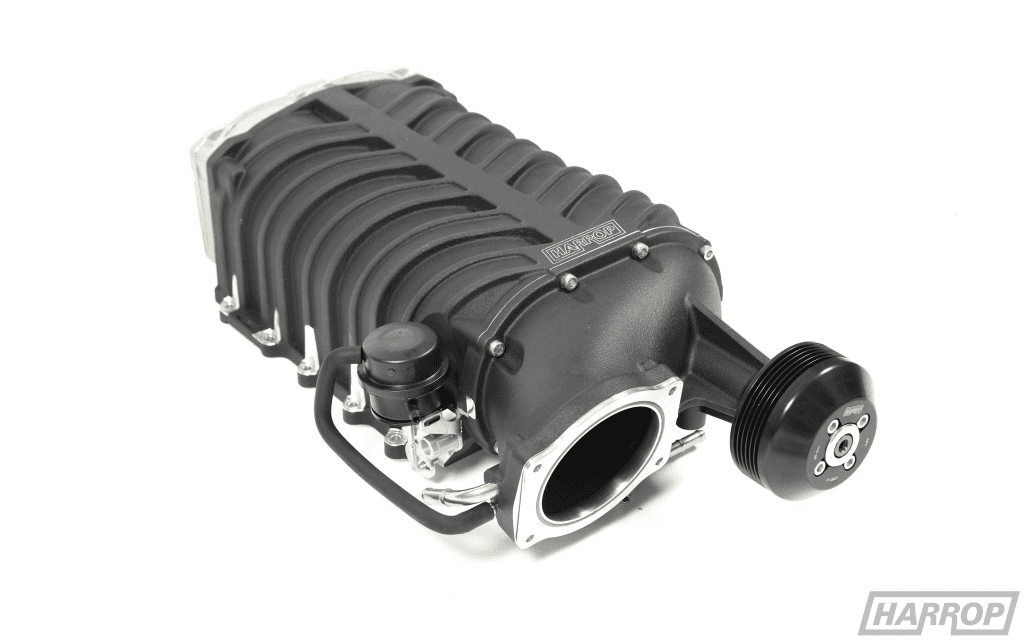 Harrop TVS2300 or TVS2650 Supercharger head unit with integrated bypass valve and choice of drive pulley size