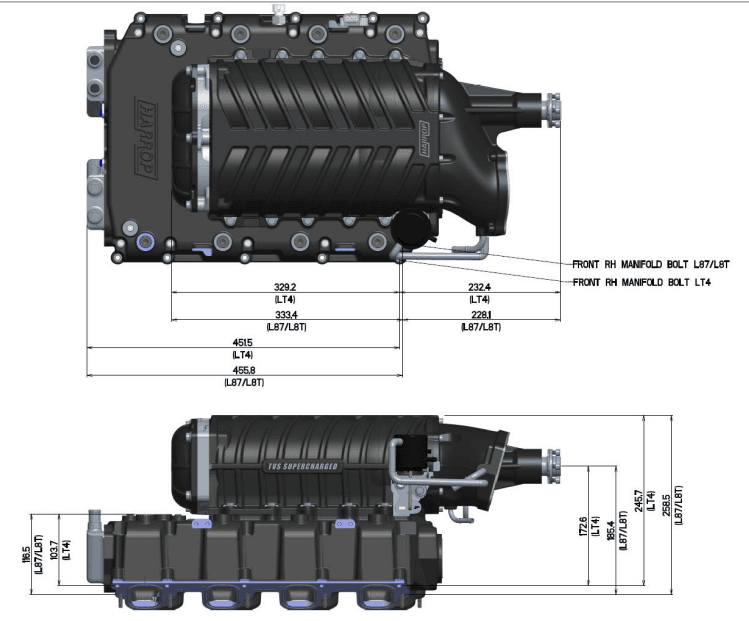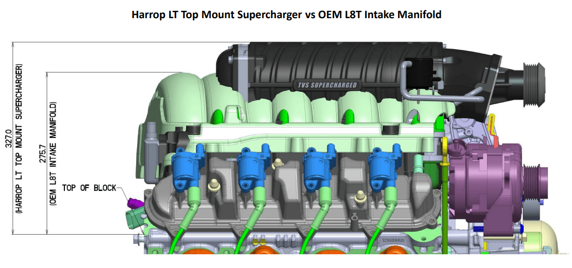 Horsepower Gain: Depends on tuning - TVS2650 MK2 Supercharger is capable of producing 1100+ hp with further supporting modifications. (For anyone looking to make more then 750HP we recommend adding the port injection fuel rails which required DI injector plugs or getting a port injection plate.)