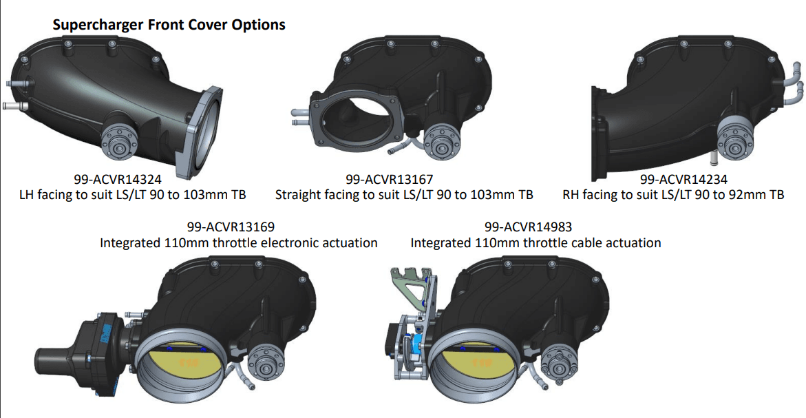 Choice of 5 different front covers to suit various airbox setups and throttle body needs