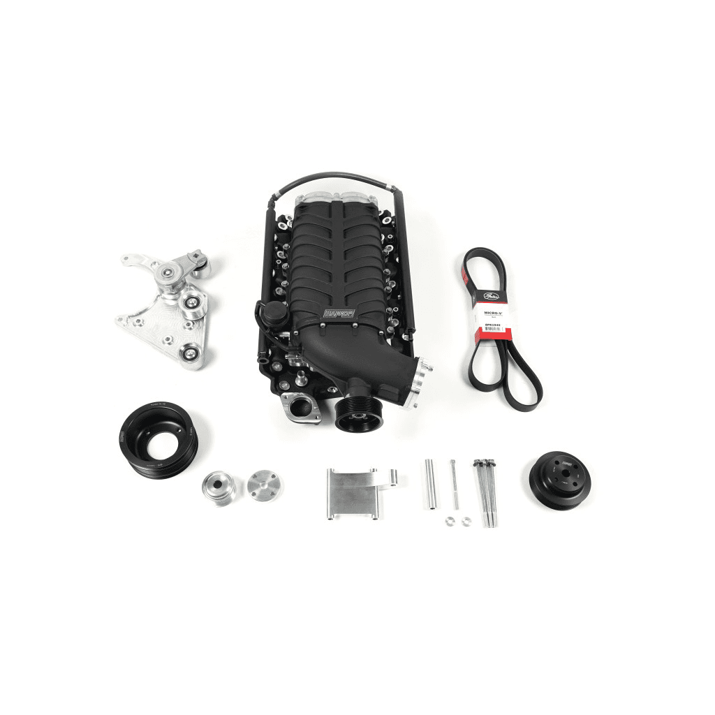 8-Rib FEAD Idler Bracket including automatic tensioner, Crank Pulley, Alternator Pulley, Water-pump Pulley and Supercharger Drive Belt
