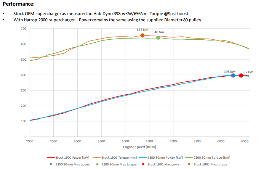 20% larger positive displacement supercharger compared to OEM TVS1900