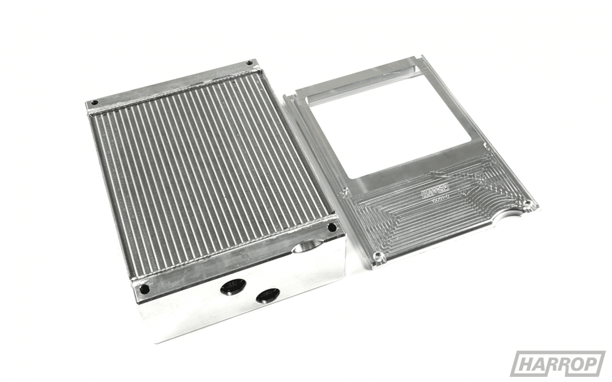 Our LSA Lid retains the factory mounting positions for IAT and MAP sensors and offers variable intercooler inlet options, including standard quick connect hose fittings, 1" hose fittings and AN16/DASH16 fittings for maximum flow performance. The Harrop Intercooler Core features high density fin, closed pitch tubes with billet end tanks to withstand higher boost pressures compared to the factory end tanks which are prone to collapsing under load.