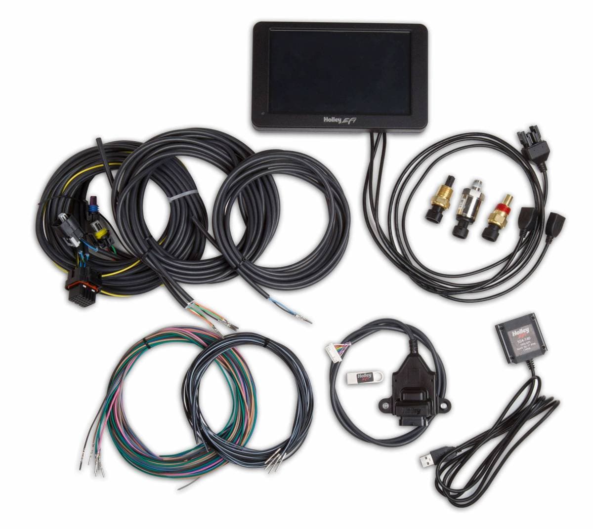 Included parts: Standalone digital dash kit with I/O adapter, USB memory stick, terminated vehicle harness, oil pressure sensor, CTS sensor, MAT sensor, USB GPS
