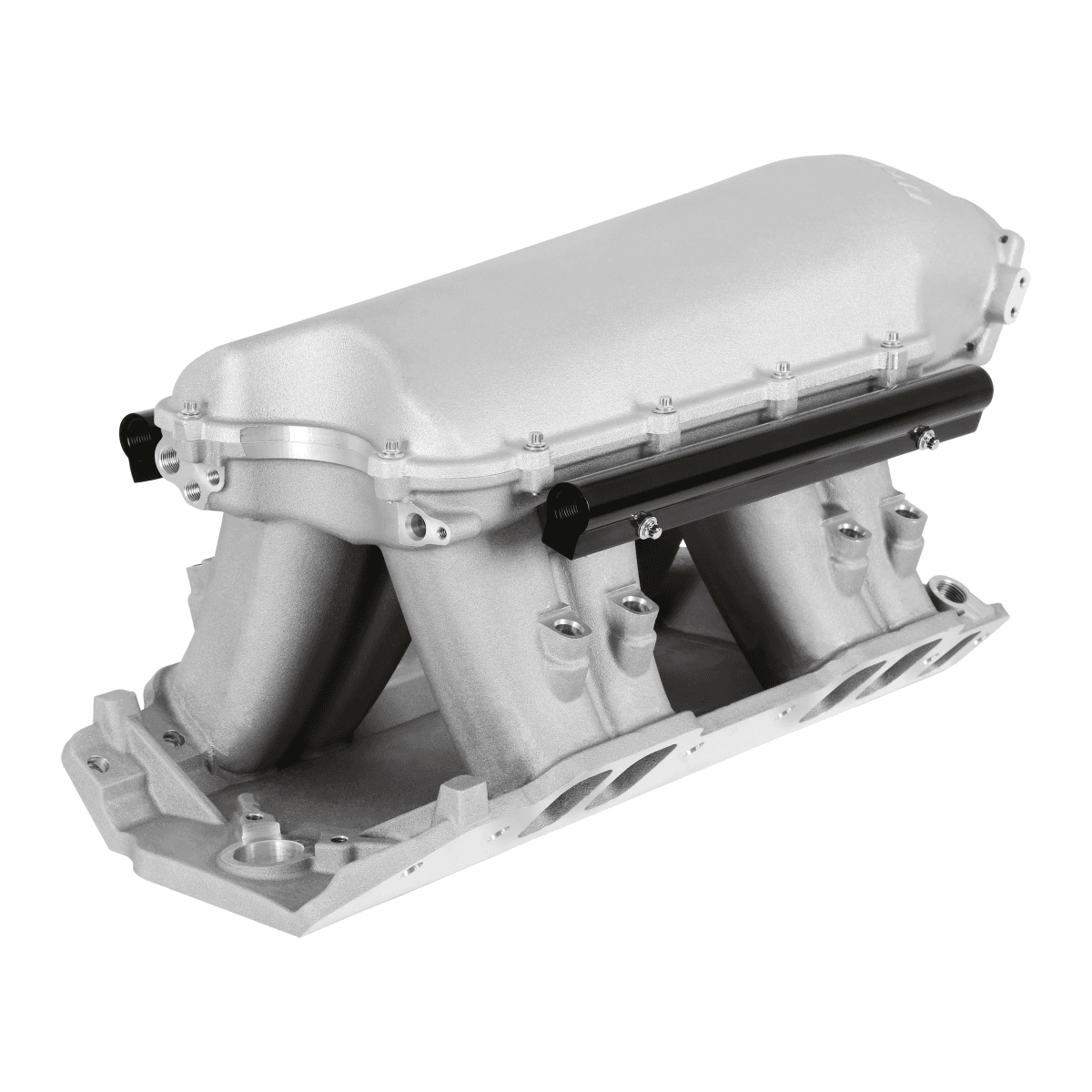 Black anodized EFI fuel rails are machined for -10AN O-ring fittings and come included with these EFI Hi-Ram kits.