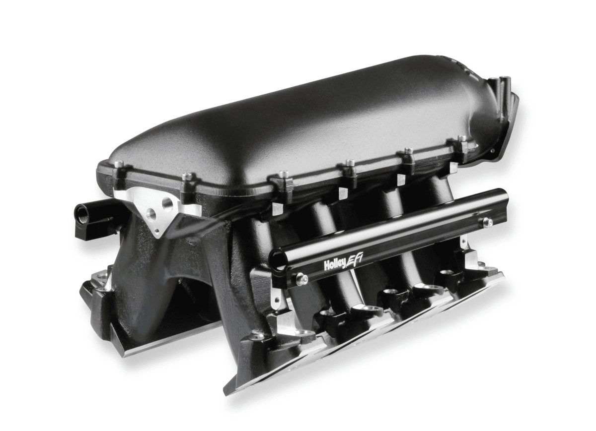 The Holley GM LS1/LS2/LS6 Modular Hi-Ram Intake Manifold is introduced as a cost effective alternative to fabricated sheet-metal for high-performance applications where induction system height is not limited. Coupling this Hi-Ram intake with the high flowing LS1/LS2/LS6 style cylinder heads has outstanding potential for N/A and forced induction applications at a budget-minded cost. Aggressive, bold, race-bred styling will make bad intentions clear for drag race, muscle car, marine, off-road, sandrails, pulling trucks, track, street-rod applications and more!