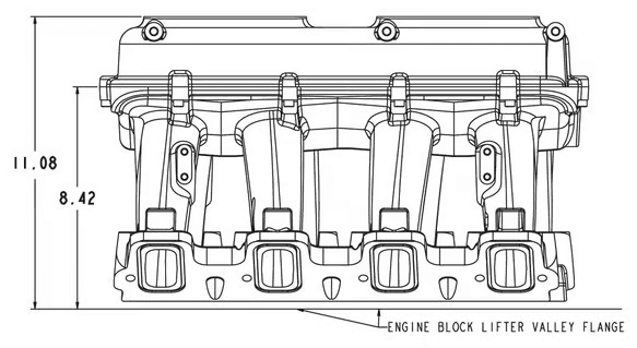 Base Plenum Top Mounting Flange Height – 8.42” to the lifter valley cover flange on engine block.