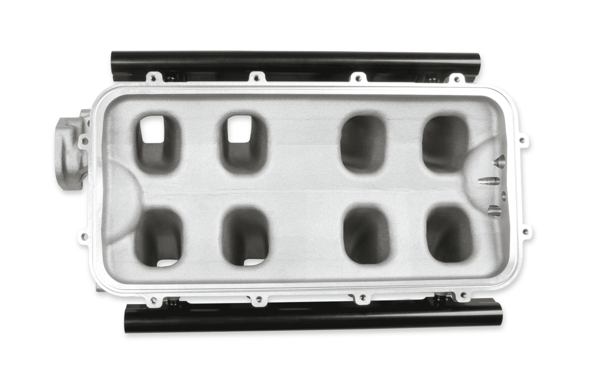 EFI fuel rails are machined for -8AN o-ring fittings with passages large enough to accommodate high fuel flows and dampen pressure pulsations in the fuel system and come standard with EFI Hi-Ram kits.