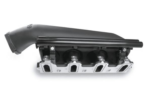 Low height to aid the packaging of a plenum mounted air-to-water intercooler in a top-feed configuration or to fit under a stock or mildly modified hood in the front-feed configuration