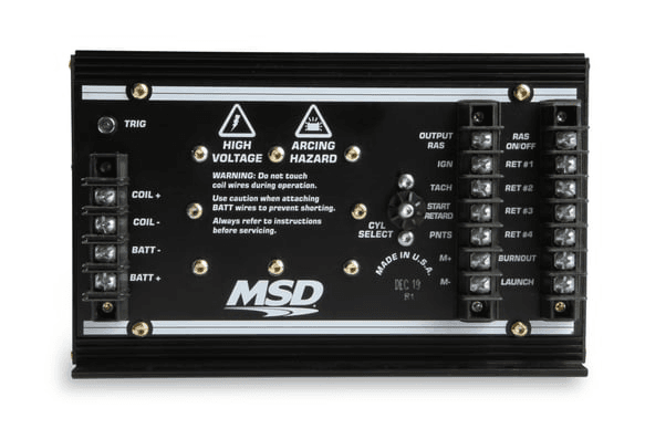 All of the features are adjusted using plug-in modules including the 3-Step Rev Control and Multi-Step Retard. The Rev Control gives you the ability to set one rev limit for the burnout, another for the staging rpm limit and a third for use top end engine protection in the event of driveline failure. For nitrous fans, there are four separate stages that can be activated independently yet add up together. Plus there's an RPM Activated Switch for precise control over a circuit. Something new is that the start retard is now adjustable with plug-in modules giving you better control over the amount of retard pulled out during cranking. The unit is supplied with a variety of rpm and timing modules. It is has a foot print that fits into the red 7AL-3's mount.