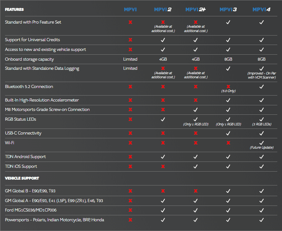 MPVI4 currently does not currently support any Ford EEC-V, Mopar JTEC, JTEC+,JTEC+B, and NGC3 vehicles they will be supported in a future update.