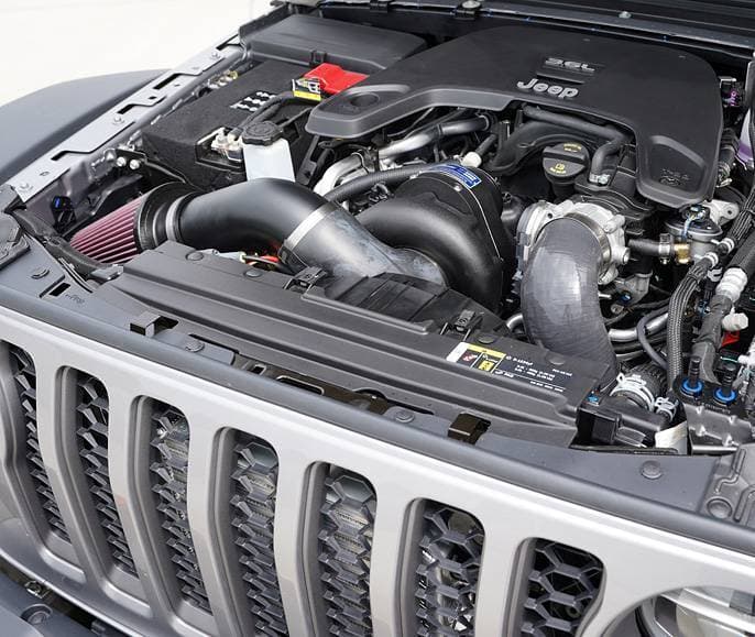 These new systems produce a reliable 40-45%+ horsepower gain with just 7 psi, on otherwise stock 3.6L engines running premium pump gas. Available with a Best-in-Class towing capacity of 7,650-pounds, adding a ProCharger system will make towing a breeze for your new Jeep Gladiator. Featuring the easiest and quickest installation available, our Systems and Tuner Kits were designed with simplicity in mind – No permanent modifications are required, with only minor trimming of fan shroud needed for a simple installation. With both the HO Intercooled System and Tuner Kit you also have your choice of the helical gearset option for lower supercharger noise levels, and your choice of multiple supercharger and bracket finishes–satin, polished, or black finish. Black finish is also available for the intercooler.