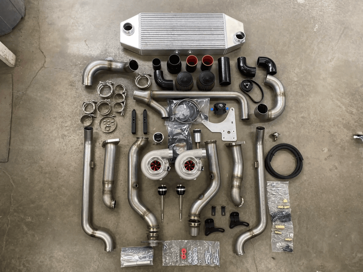 These turbocharger kits are the most complete available, including everything needed for installation other than fuel system and tuning. This includes headers, bypass valves, intercooler, all the tubing, piping, fittings, and clamps. You do not need to make any major modifications or purchase special tools. Many customers install in their garage or driveway over a weekend.