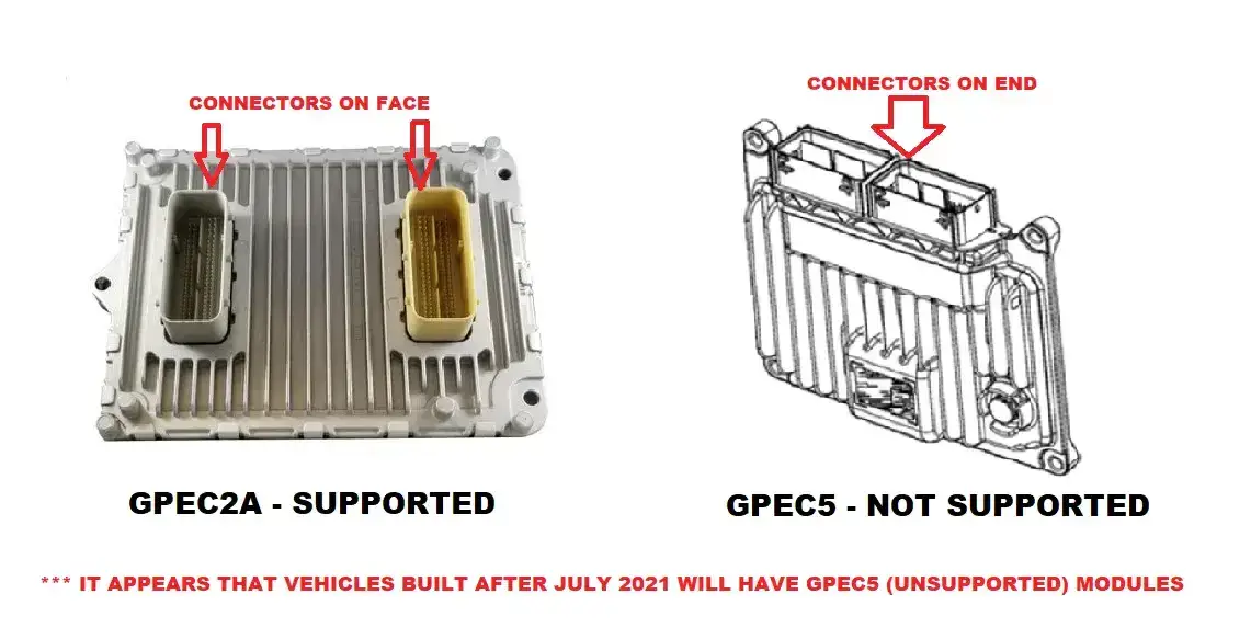 Note: For 2021 and onward, verify whether your PCM Connectors are on the side or the top of PCM. Currently. ONLY SIDE CONNECTOR PCMs are supported