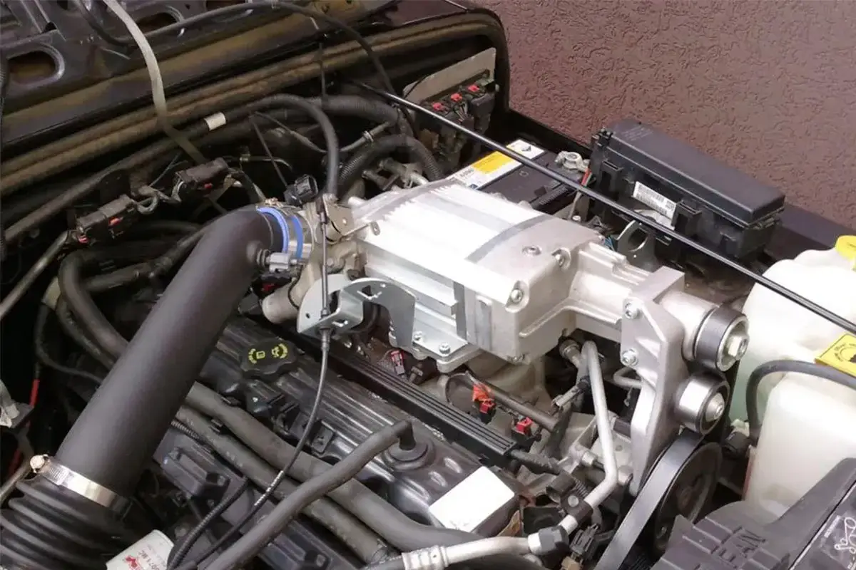 Fully integrated supercharger system (not a self assemble kit).