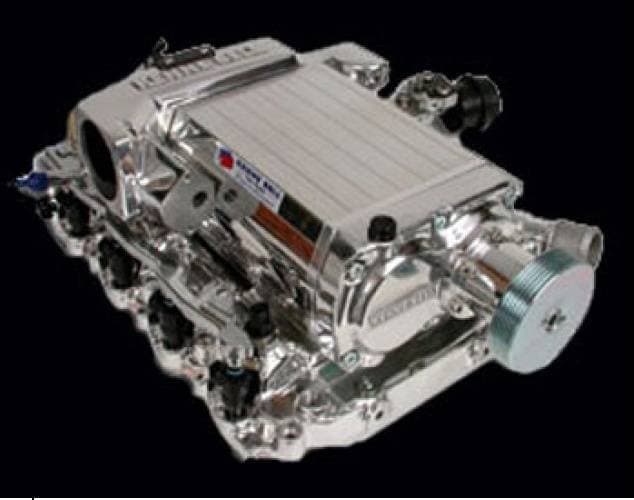 Big Bore 2.1L billet twin screw supercharger head unit, Black Powdercoated finish, 6-14 psi on 91 octane