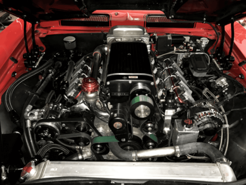 • Exposed top mount supercharger runs cooler. Not entombed in intake runners, intercooler and engine covers.