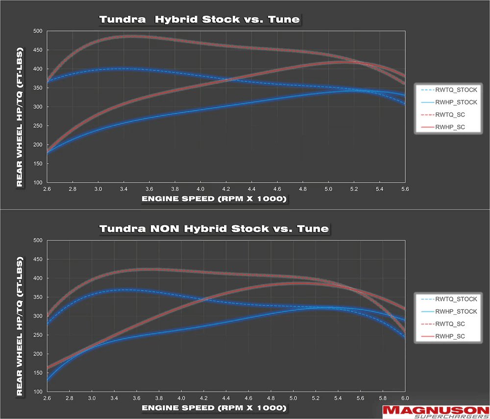 This is a Magnuson 2022+ Toyota Tundra / 2023+ Toyota Sequoia Performance Tune. Unlock your truck's true potential with a massive increase of +85 horsepower and +85 ft-lbs of torque. Experience robust torque and horsepower gains across the entire powerband—precision engineered for proven Magnuson performance.
