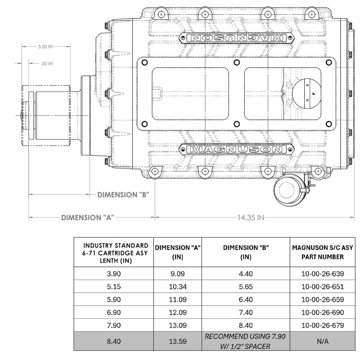 Multiple billet aluminum drive snout lengths available (3.90”–7.90”) for easy belt alignment with virtually any 6-71/8-71 style drive configuration