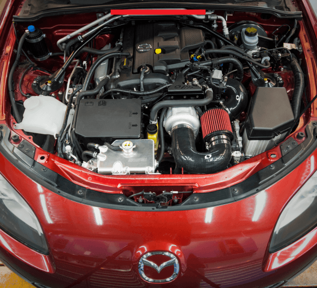 The Kraftwerks Miata supercharger system provides instant throttle response and a progressive power curve that increases all the way to redline without the typical spiking or surging turbochargers are known for. This unique, more usable power curve results in reduced cylinder pressures, less strain on engine components, and increased reliability. Rotrex superchargers also operate much cooler when compared to turbochargers and other supercharger systems, which reduces the engine’s intake air temperature as well as its risk of detonation.