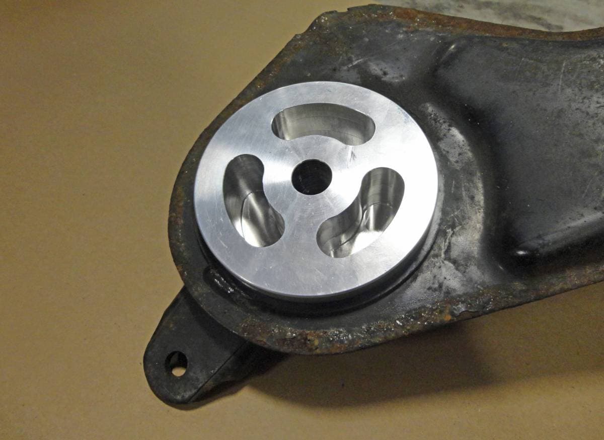 The rubber OEM rear cradle bushings are soft and flimsy, this allows the rear cradle to move around under hard acceleration, cornering and braking. The Gforce solid aluminum cradle bushings are a direct bolt in replacement for the OEM rubber bushings. Solid bushings will stiffen the suspension and reduce the rear cradle movement providing better 60 ft times as well as a firmer feel from the suspension. GForce tested these solid bushings in their GTO shop car and were able to improve on 60ft times. They were able to pull a best of 1.39 60ft time all motor! The solid aluminum bushings are cnc machined from aircraft grade aluminum and come as a set for left and right.