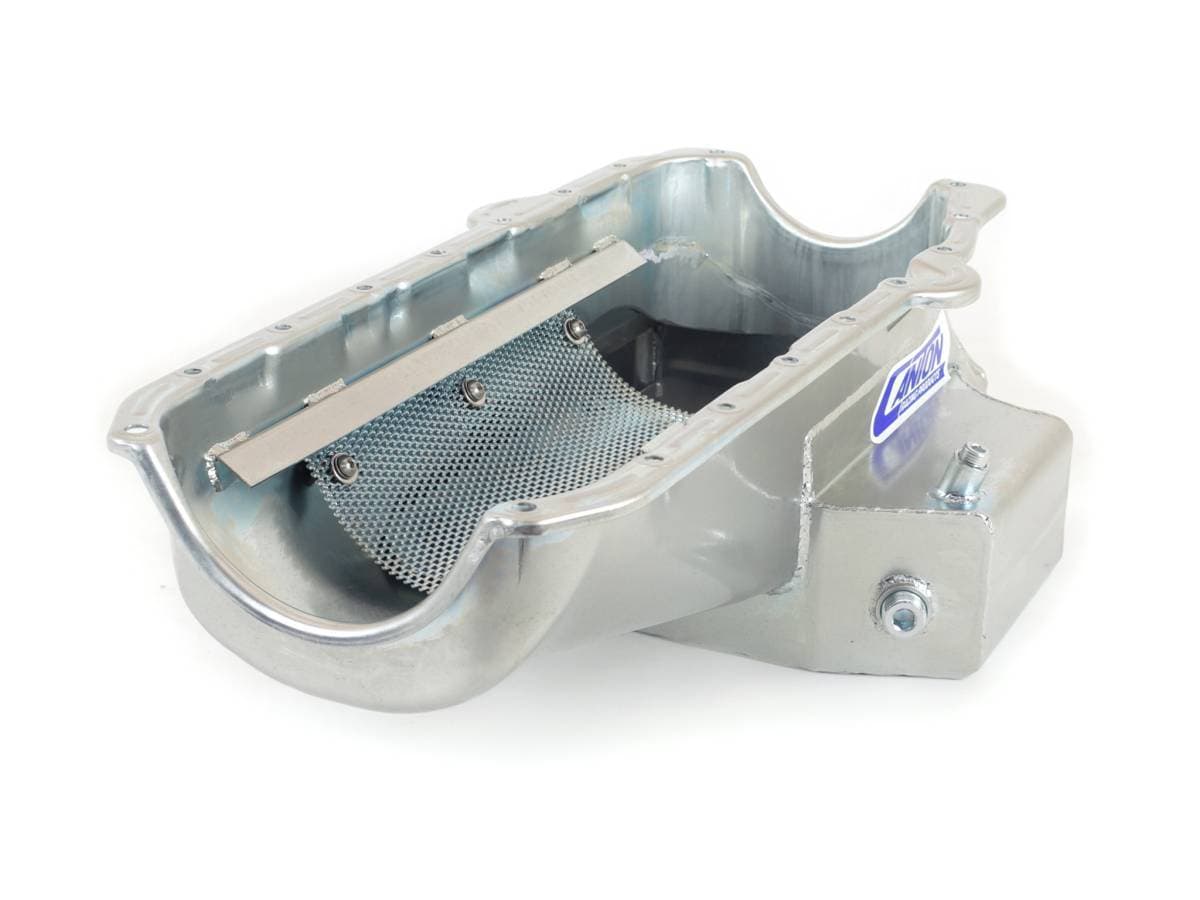 Features: Pre-1980 Small Block Chevys with left side dipstick, It is designed for x-member clearance in street stock and late models using 1978 and newer G body GM chassis