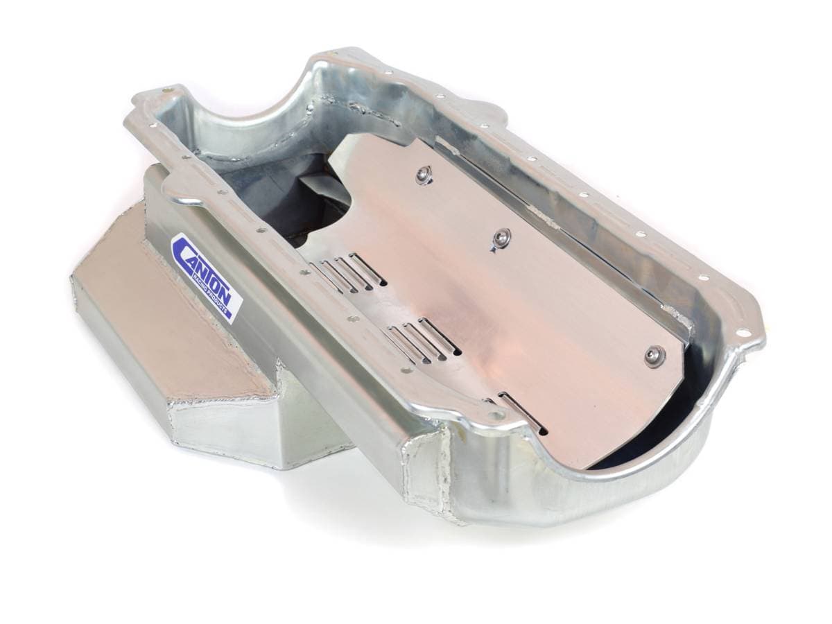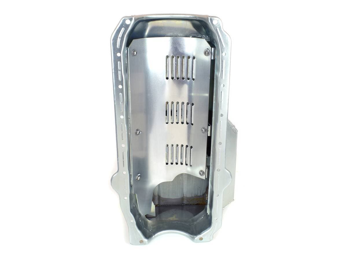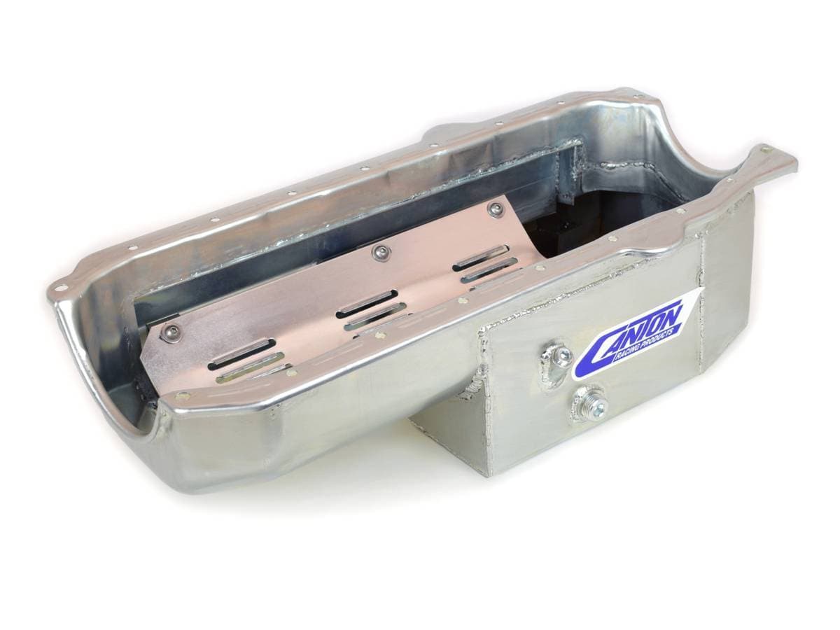 Features six trap door baffles, oil recovery pouch, bolt in slosh baffle, built in louvered windage tray, 1/2" temperature bung and provision for Canton Racing pan mounted dipstick