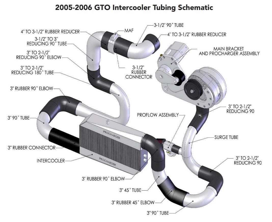 ProCharger Race Intercooler: 1998-2002 Camaro/Firebird & 2004-06 GTO - Featuring a massive 4.5" thick cooling core. 3" inlet/outlet, 29" x 12" x 4.5"