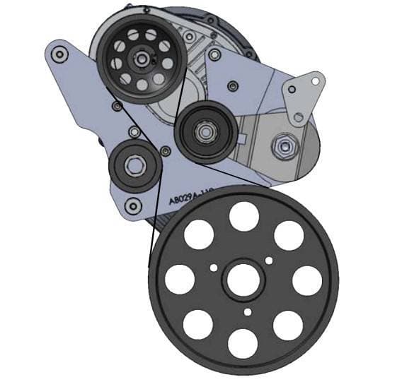 New ProCharger 8 Rib Main Bracket Bag with H.D. Tensioner for 2015-2019 C7 Chevy Corvette 6.2L, Standard satin/grey metal finish, polished or black powdercoat optional. Standard fitment for all P-1SC through F-1A-94 Procharger Head Units. Includes tensioner, idler pullies, spacers and install hardware. Does not fit oil fed P600B or D-1 Headunits.
