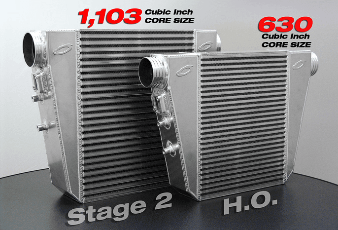 ProCharger Raptor Intercooler = Lower Air Temps and More Power. When it comes to intercoolers, size matters—and ours is nearly twice the size of stock (99% larger!). Designed for maximum efficiency, ProCharger's Raptor intercooler delivers significantly lower air inlet temperatures and reduced pressure drop, which means better performance—especially when pushing your Raptor in demanding conditions. Go big or go home!
