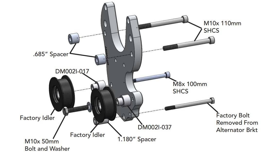 ProCharger 2018-22 Jeep Wrangler JL & 2020-22 Gladiator JT 3.6L Supercharger Mounting Bracket (shared 6 rib). Standard satin/grey metal finish, polished or black powdercoat optional. Standard fitment for all P-1SC through F-1 Procharger Head Units. Includes: idler pullies, spacers and install hardware.