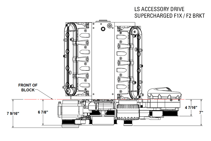 Pictures 11-13 are showing the LS accessory drive with the optional 10 rib F-1X/F2 supercharger bracket